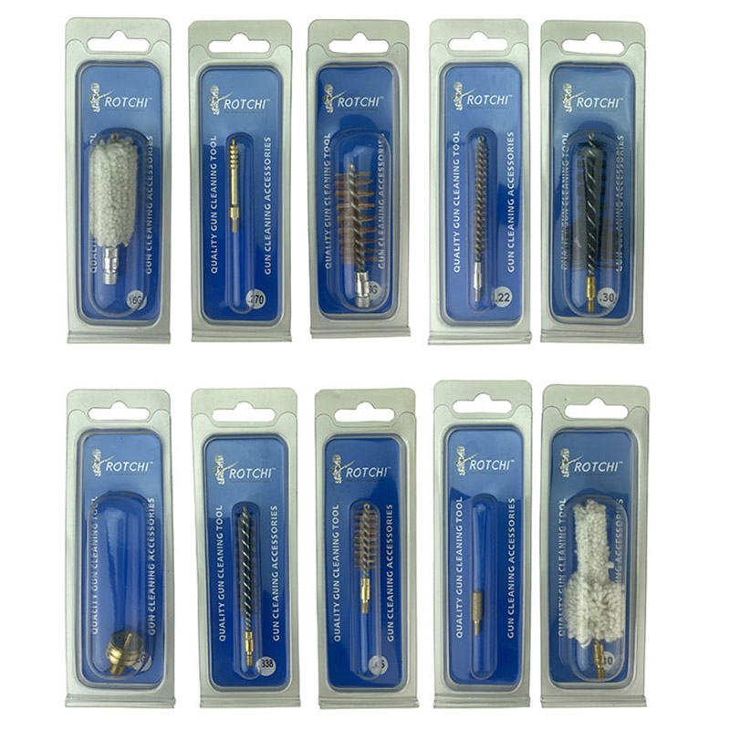 Bàn chải làm sạch súng dây đồng để làm sạch lỗ khoan. Rotchi cung cấp tất cả các cỡ nòng từ 0,177/4,5mm đến 12Gauge. Và có bao bì khác nhau cho sự lựa chọn thông minh của bạn, như vỏ sò/vỉ đôi, số lượng lớn, 3 chiếc một gói, 10 chiếc mỗi gói.