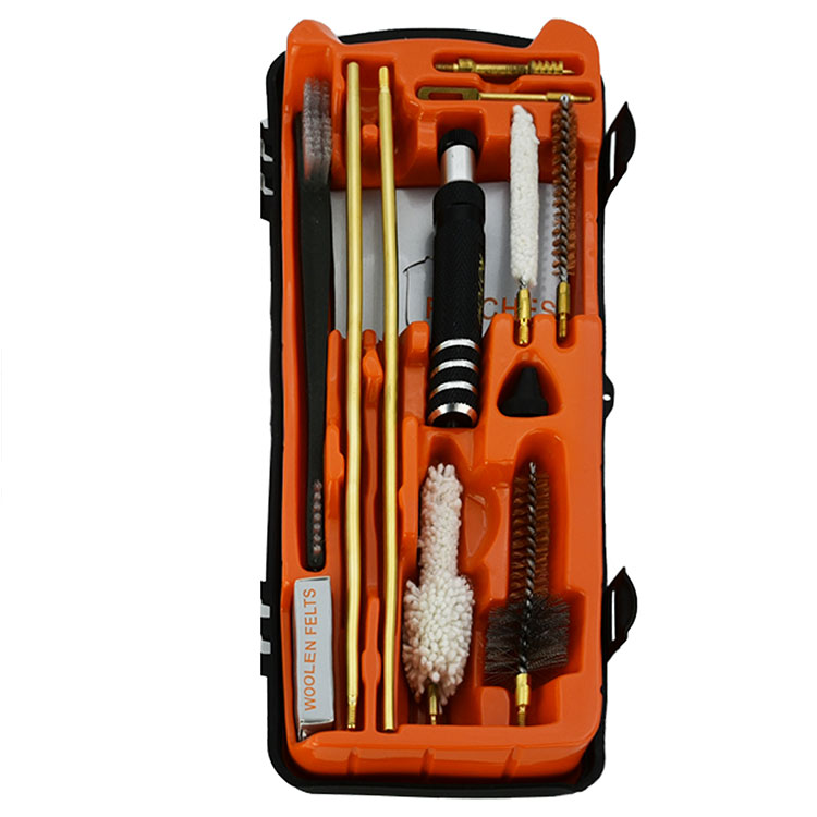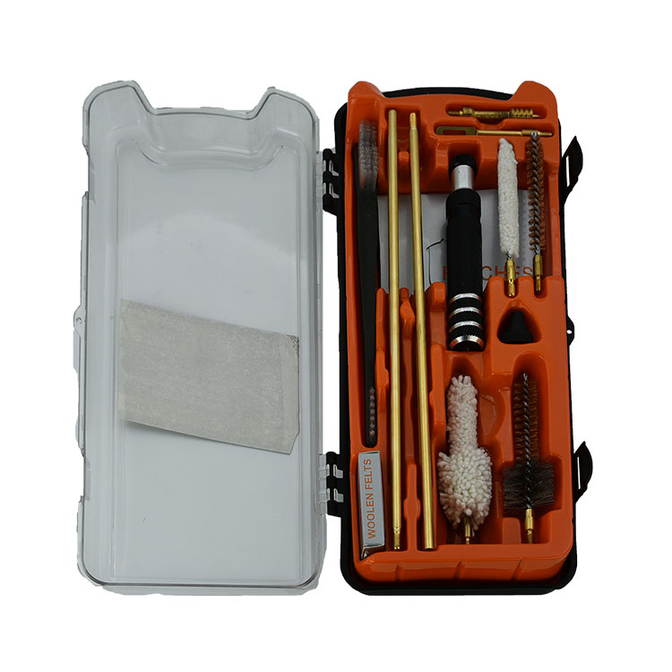 The compact gun cleaning kits provide you the full professional cleaning tools to meet different gun calibers. Blister trays help you collect them regularly. The small volume and the strong case can permit you put them in gun cases or sackbags. The series are without oil bottle in.