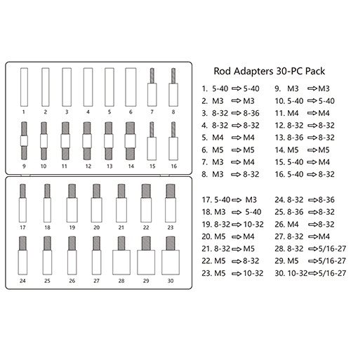 Thẻ nóng: Bộ điều hợp lắp thanh làm sạch súng Gói 30 chiếc 5-40 8-32 10-32 5/16-27 M3 M4 M5 Chủ đề ở đầu nối thanh nam và nữ, Nhà sản xuất, Nhà cung cấp, Bán buôn, Tùy chỉnh, Còn hàng, Mẫu miễn phí, Trung Quốc, Bảng giá