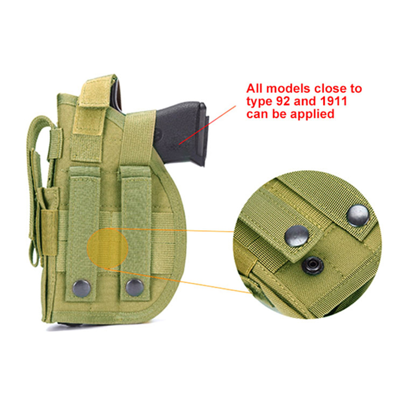 Chất liệu cao cấp Chất liệu bên trong bằng cao su tổng hợp bền, mềm và thoáng khí chắc chắn sẽ che giấu sự lựa chọn súng ngắn của bạn. Dây đeo có khóa chắc chắn sẽ khóa chặt và ngăn vũ khí của bạn bật ra ngoài!. Bao da được làm bằng nylon chắc chắn không chỉ đẹp về mẫu mã mà còn bền khi sử dụng.