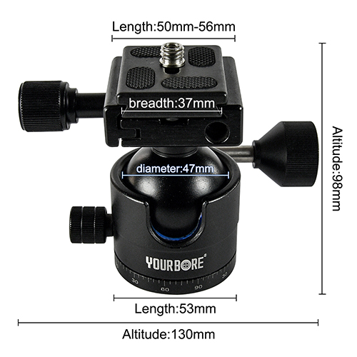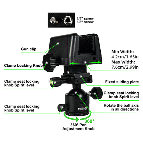OEM CNC Nhôm 360 Độ Đầu Bóng Chụp Yên Xe Còn Lại Kẹp Cho Săn Bắn Dính Monopod Chân Máy