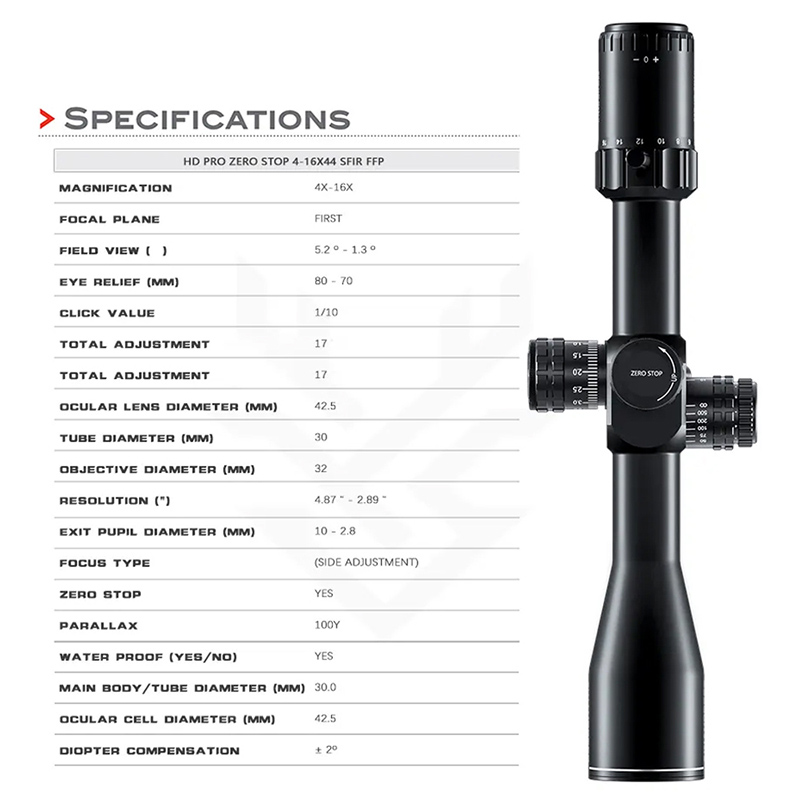 Quang học HD PRO ZERO STOP 4-16x44 SFIR FFP Săn bắn chống sốc cao
